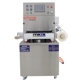 自动真空置换式气调包装机, 采用全封闭真空置换的方式对食品进行气调保鲜包装,即在真空室全封闭的状态下,利用真空泵抽真空,使真空室内的容器形成高真空环境,然后充入按一定比例精确混合的可使食品延期保鲜的气体,在最大程度上抑制各种细菌与微生物的滋生。这种包装方式可使气体置换率≥99.5%,气体混合精度误差±1%。可在最大程度上延长食品的保鲜与保质时间。